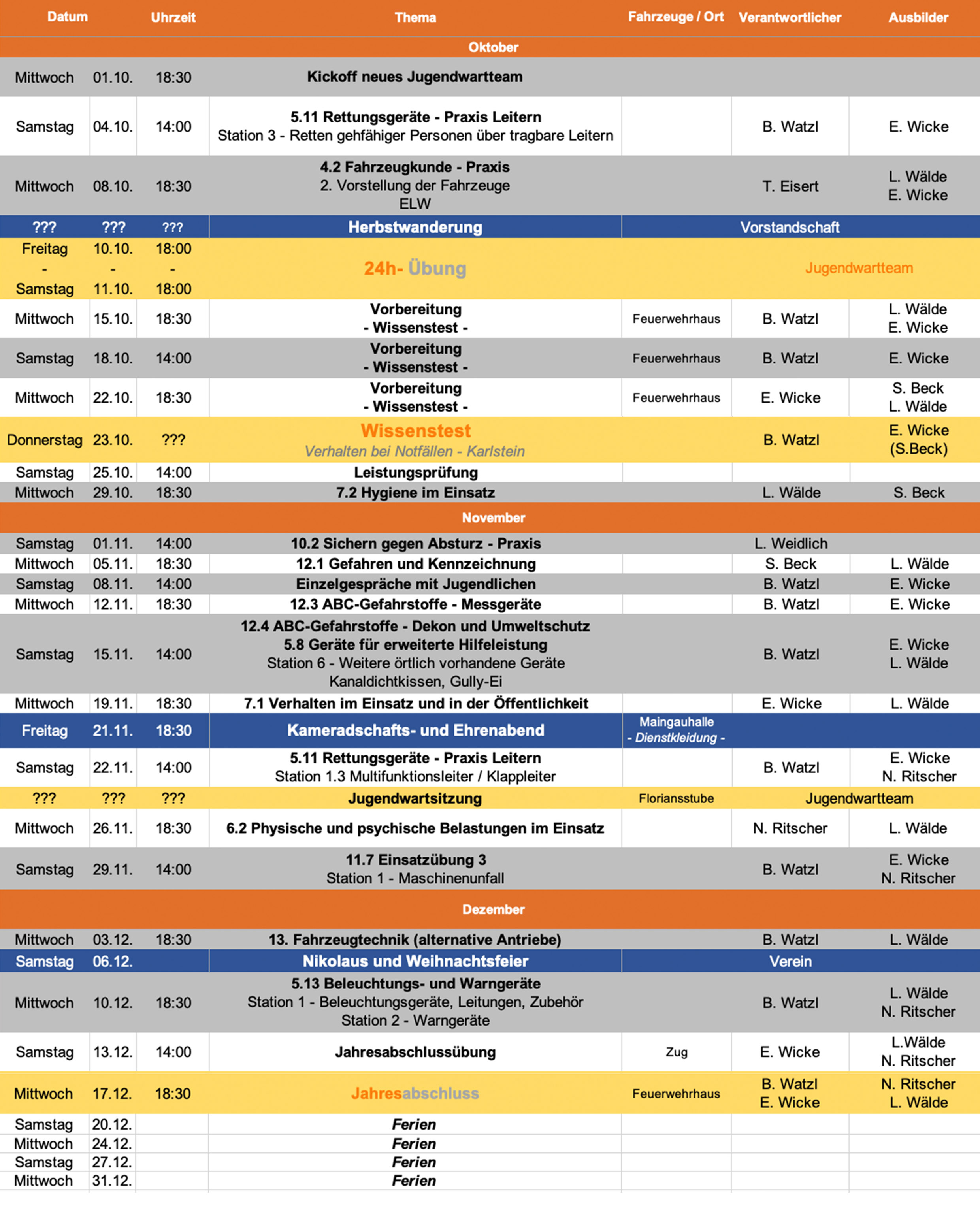 Nachfolgend der aktuelle Ausbildungsplan der Jugendfeuerwehr: